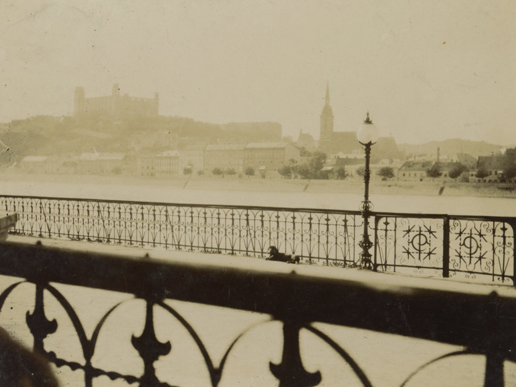 Blick auf Pressburg von der Engerau-Seite der Donau.