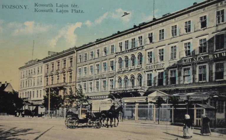 Das Hotel Zum Grünen Baum auf einer seltenen historischen Grafik aus der Zeit um 1850. Das Hotel Zu ...