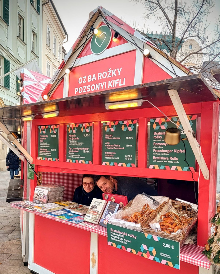 Unser Bürgerverein hat traditionell auch heuer seinen Stand auf dem Weihnachtsmarkt auf dem Hauptplatz in Bratislava. Neben den berühmten und leckeren Pressburger Kipferln mit Mohn- und Walnussfüllung bieten wir auch zahlreiche Publikationen aus unserem Verlag an.