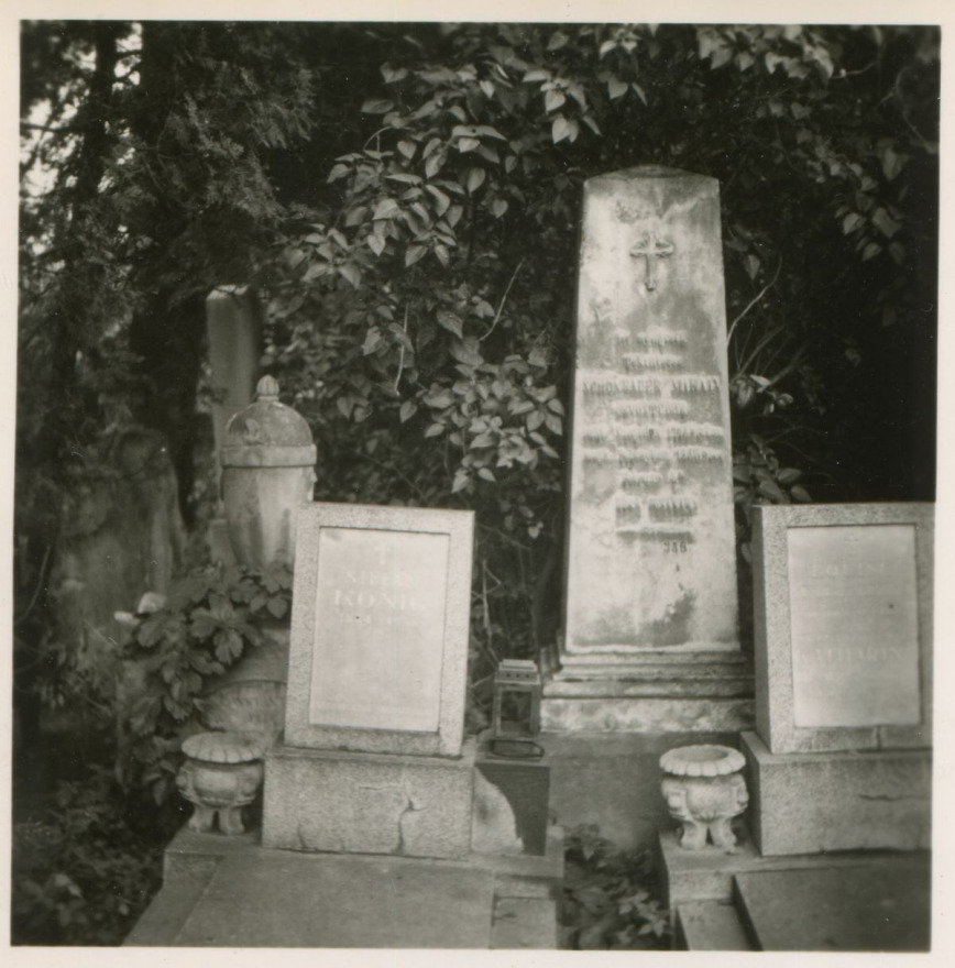 Grabsteine von Michael Schönbauer (hinten rechts) und seiner Tochter Konstantia (hinten links). Quelle: Museum der Stadt Bratislava, Foto: Ovidius Faust (1962)