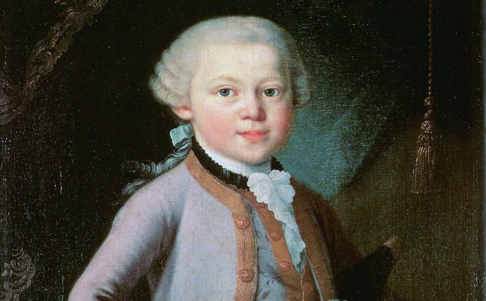 Wolfgang Amadeus Mozart im Galakleid, Geschenk von Maria Theresia. Ölgemälde von Pietro Antonio Lorenzoni (?) 1763 (Quelle: Wikimedia Commons)